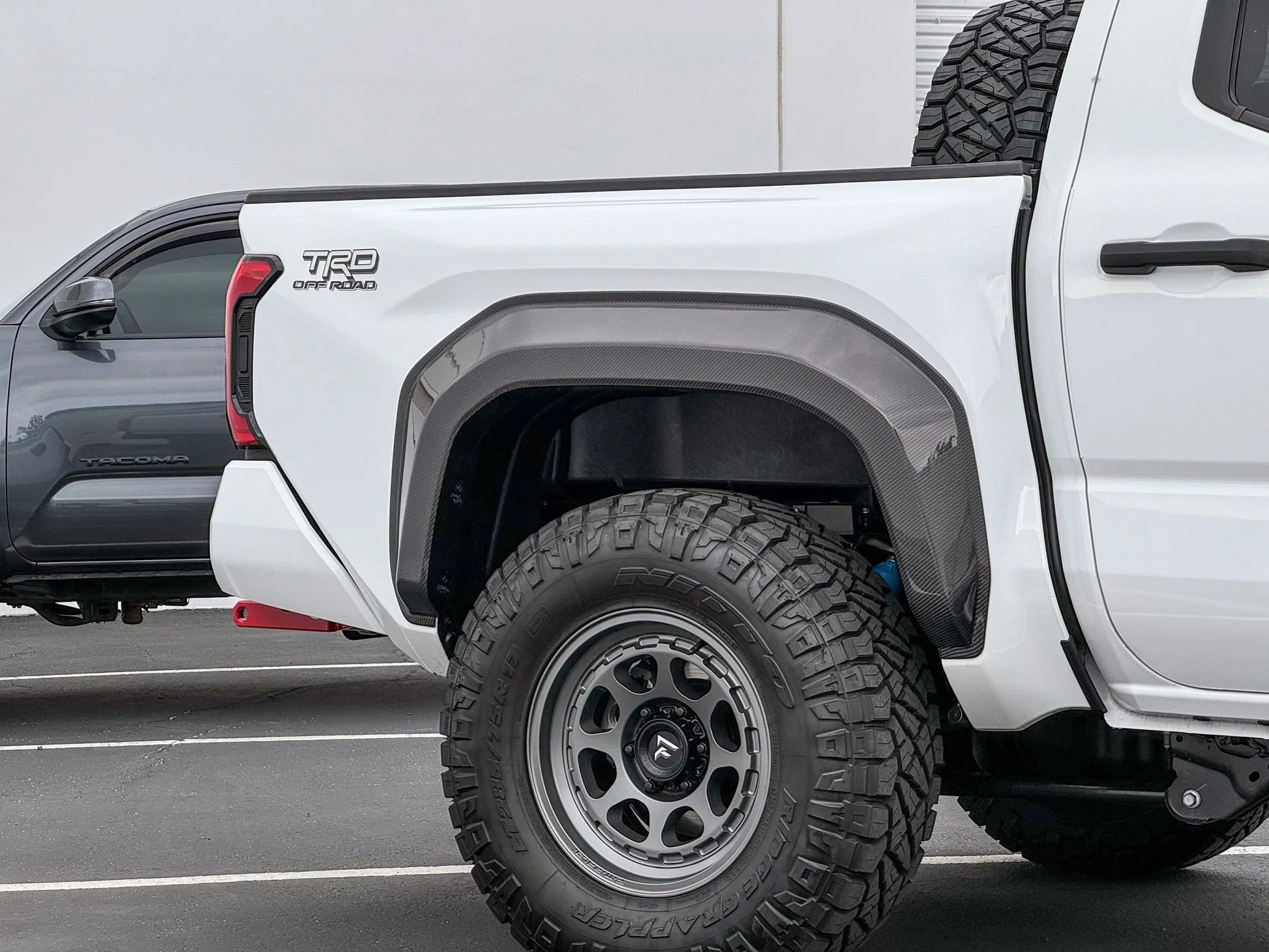 Our 2024-Current Toyota Tacoma Fender Flare Kit adds 1 inch per corner on TRD PreRunner/Sport/Off-road and Limited trims, and 1.5 inch on SR and SR5 trims. It is designed to provide extra protection to your vehicle’s body panels from the dirt and rocks picked up by wider and taller off-road tires.