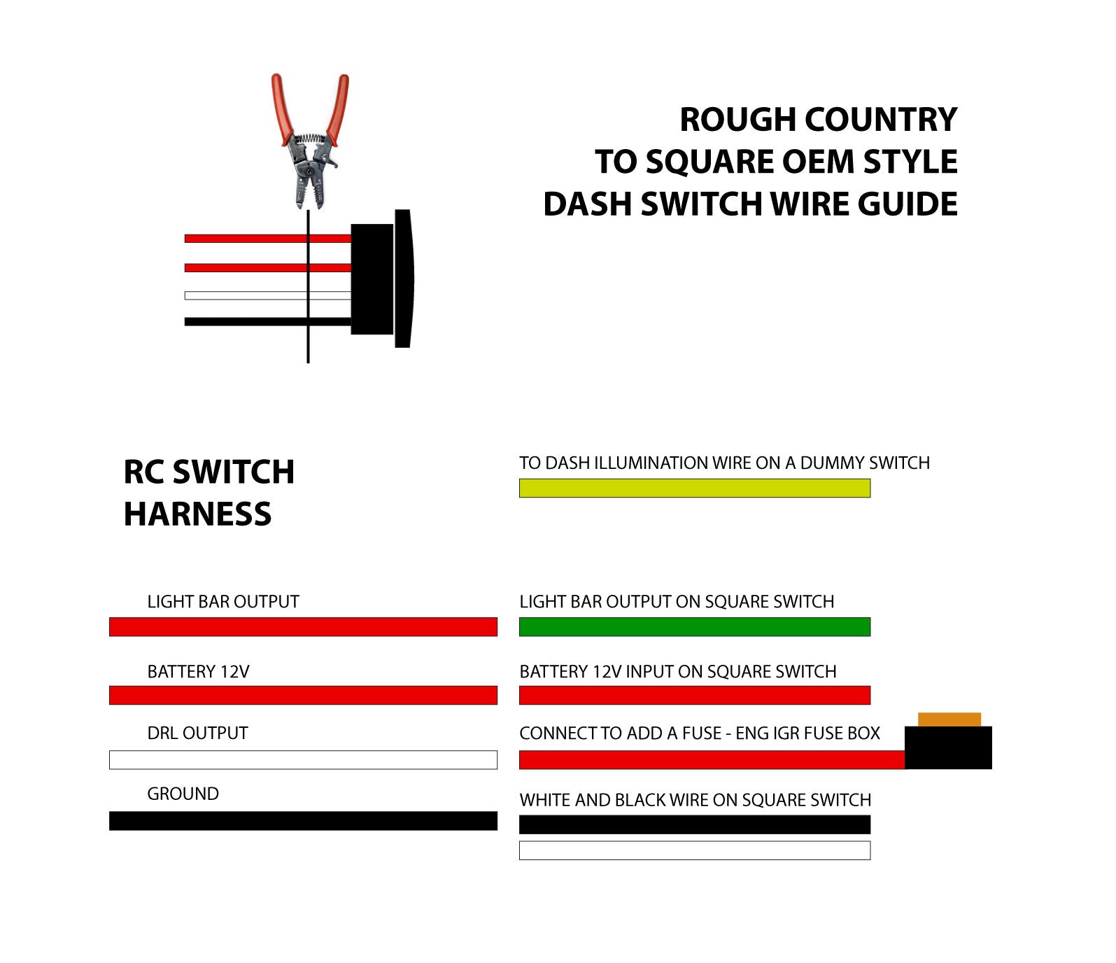 - Includes premium, flat-wound wiring harness with on/off switch for easy installation.