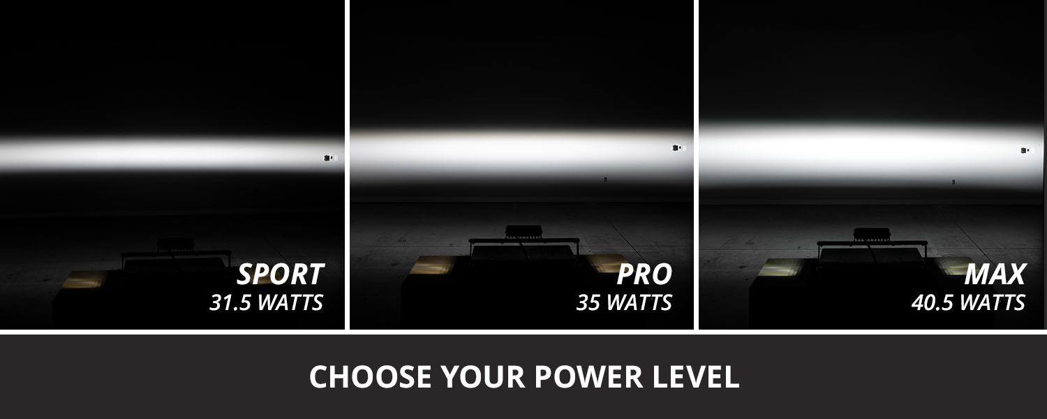 Choose Your Power Level. The SS6 LED Light Bar is available in three different power levels. All options use high-intensity, automotive-grade LED emitters and TIR optics for unmatched focus and output. The Sport model offers the best bang for your buck, while the Pro model takes things a step further with a noticeable boost in power. The Max model is designed with cutting-edge automotive emitters for both high power and extreme intensity, using the same Osram HX Boost LEDs found in our Max power level SS3 and C2 2.0 LED Pods.